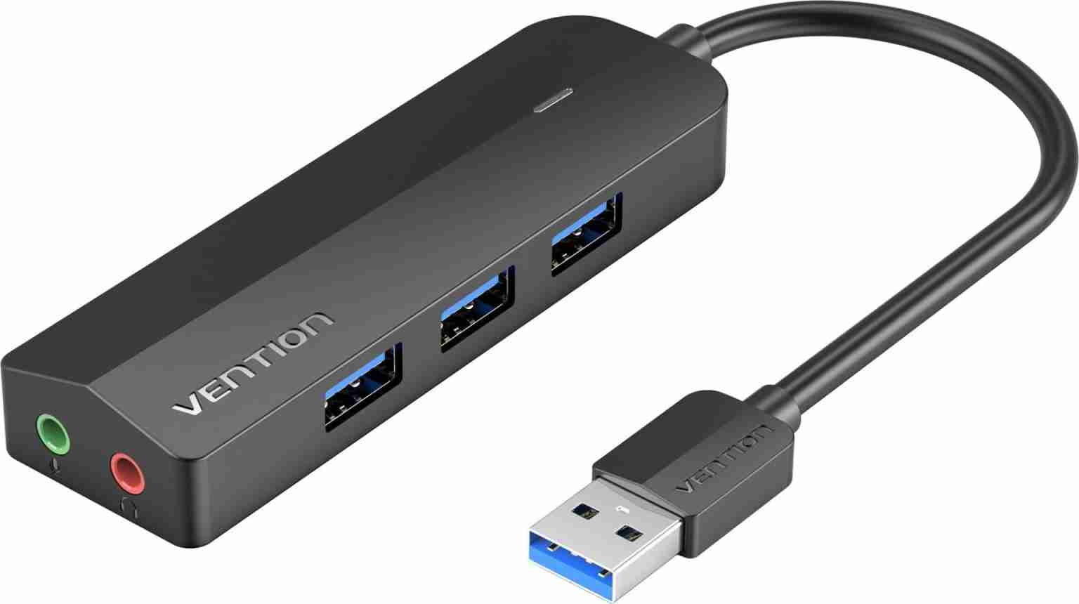Vention 3-Port USB 3.0 Hub with Sound Card and Power Supply 0.15M Black